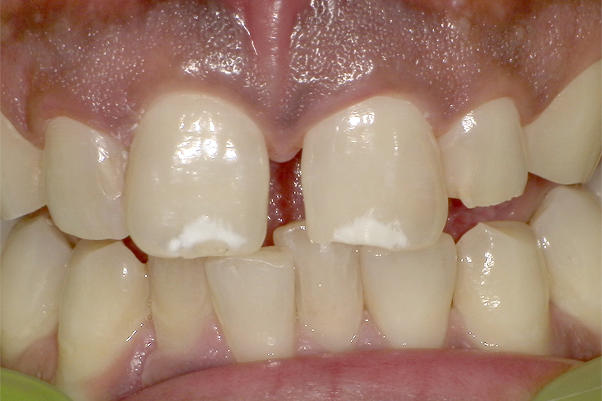 ホワイトスポット治療とは、歯の表面にできる白いシミのような部分を目立たなくする治療です。この白い部分は、歯の表面が弱くなってしまったことが原因ででき、特に矯正治療が終わったあとや、虫歯の初期段階でよく見られます。見た目が気になることが多いため、治療を行うことで自然な歯の色に戻すことができます。
